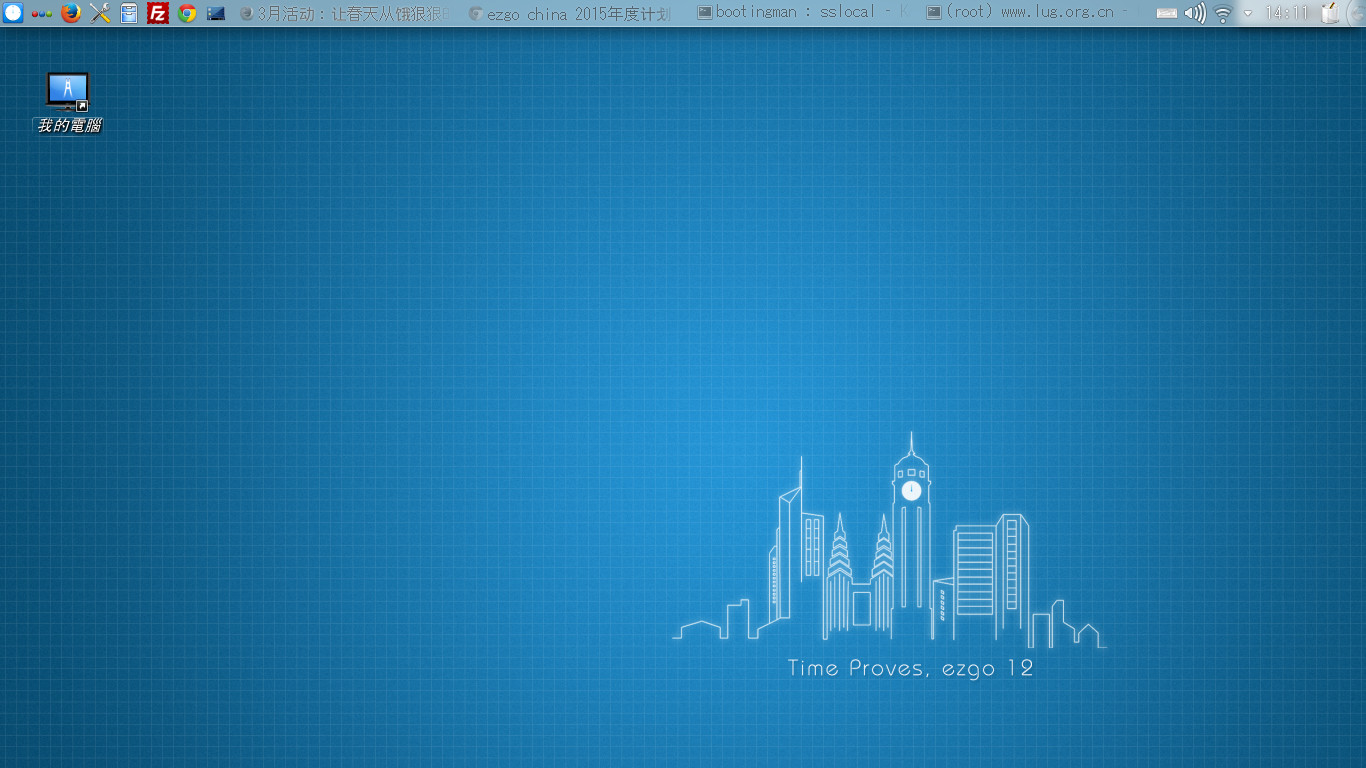 经过一年的艰苦努力和,ezgo 12 终于正式发布了,这个新版本加入了大量中国特色和重庆特色的内容,重庆的伙伴们,这个桌面你熟悉吗?这次 release party 将由 ezgo 社区的虓豪、琳洁来为大家主持,除了介绍 ezgo 12 的新特性和使用外,还有现场装机,我们的场地有 Acer 宏碁赞助的一些电脑可供大家体验 ezgo 12,但是,还是欢迎大家带自己的电脑来哟,我们也会教大家如何把 ezgo 12 安全无扰地装进你心爱的电脑中。