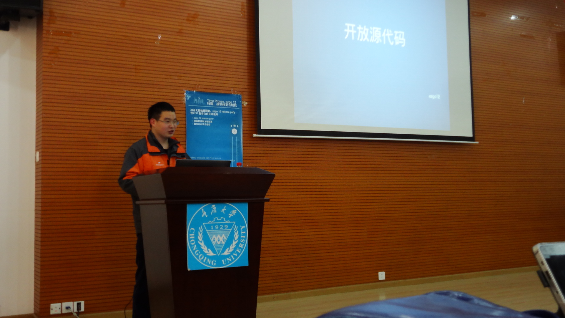 盼来了盼来了,期待已久的ezgo12 正式发布了,我们的release party也在春意盎然的重大虎溪校区如期举行。正如大家所期待的,此次活动不仅是我们ezgo12 的release party,也是重庆各路开源大侠/侠女的春节过后第一次“面基大会”。当然,我才不会说此次活动最耀眼的不是大家早已熟悉的三位讲者,而是首次亮相重庆LUG的美女主持瑞恒妹子(想要美女电话的可以私下收买我XD。。。ps:感谢我们现场的观众积极地“偷拍”我们的美女主持并和大家分享照片。)