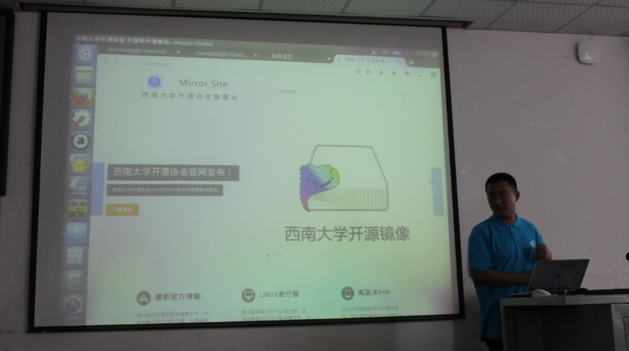 随后,由许枭飞同学继续介绍我们开源协会的开源镜像站的相关信息,并介绍的一些使用技巧,同时也告诉大家如果没有光盘的话可以通过我们提供的Ubuntu Kylin源来下来ISO镜像并刻录到U盘进行安装。