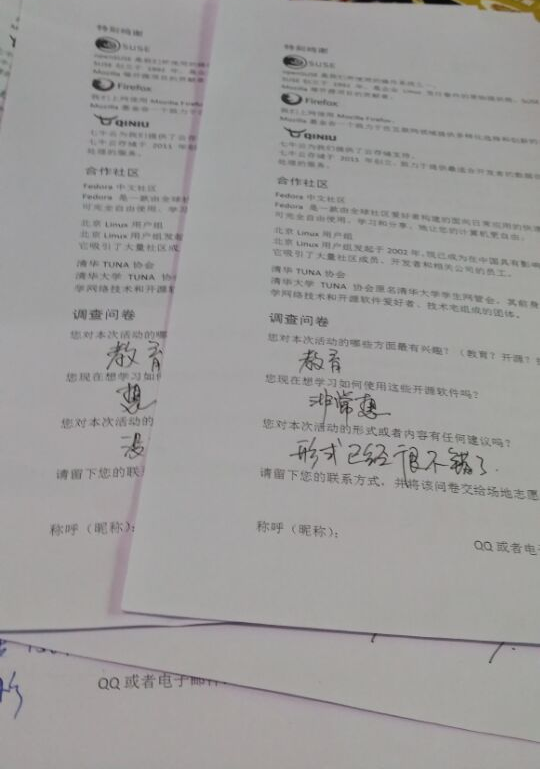 我们并没有奢求通过这一次活动就让所有人都选择开源;而是希望活动之后有能多的人听说过开源,知道在那些商业软件之外,还有一个自由软件、开源软件的选项——毕竟,每个人都有((选择自由或者不自由)的自由)。@ChongqingLUG
